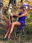 Mature slut in wet retro nylons posing outdoors |