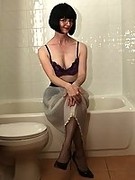 Mature slut in wet stockings, wet slip and wet heels |
